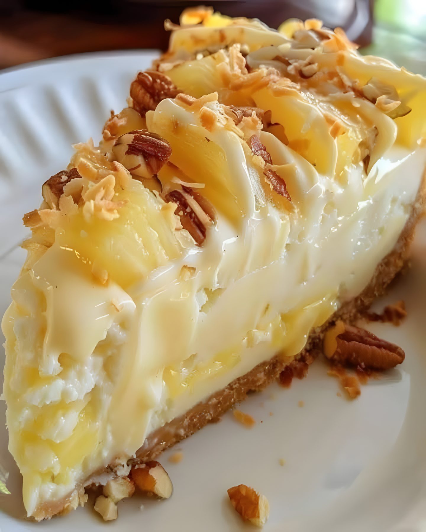 Snak je naar een licht, verfrissend en ongelooflijk lekker dessert? Deze no-bake tropische cheesecake is jouw antwoord! Met een boterachtige koekjesbodem, een rijke en fluweelzachte roomvulling, en een hemelse topping van sappige ananas, knapperige pecannoten en geroosterde kokos, transporteert elke hap je rechtstreeks naar het paradijs!