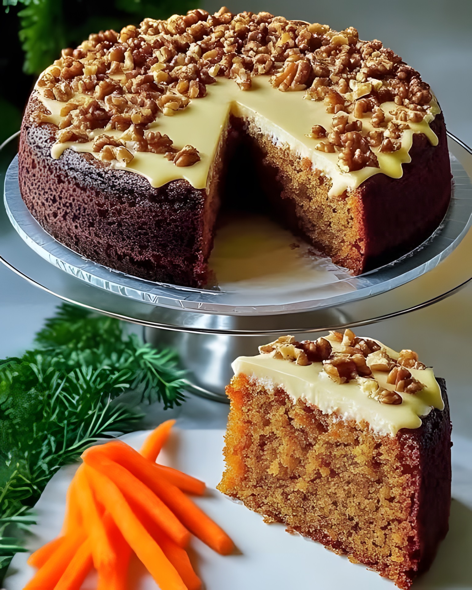 Wat deze taart zo bijzonder maakt, is de perfecte balans tussen zoete wortels, knapperige walnoten en aromatische specerijen. De toevoeging van appelmoes zorgt voor extra vochtigheid zonder de taart te zwaar te maken. En laten we het fluweelzachte glazuur niet vergeten, dat elke hap onweerstaanbaar maakt!