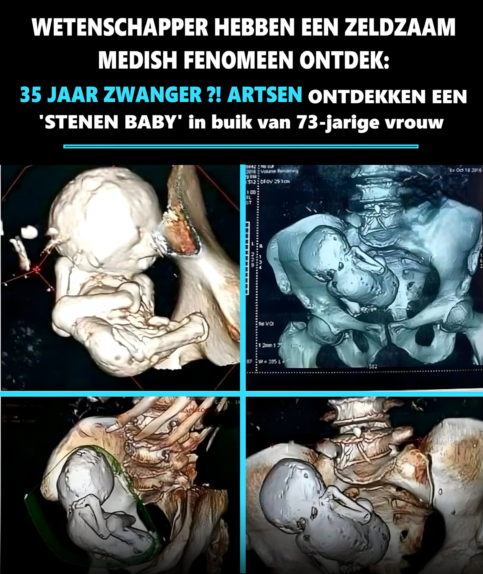 Wetenschappers hebben een zeldzaam medisch fenomeen ontdekt: een 73-jarige vrouw werd gevonden met een verkalkte foetus – een zogenaamde « stenen baby » of lithopedie – die al 35 jaar in haar buik zat.