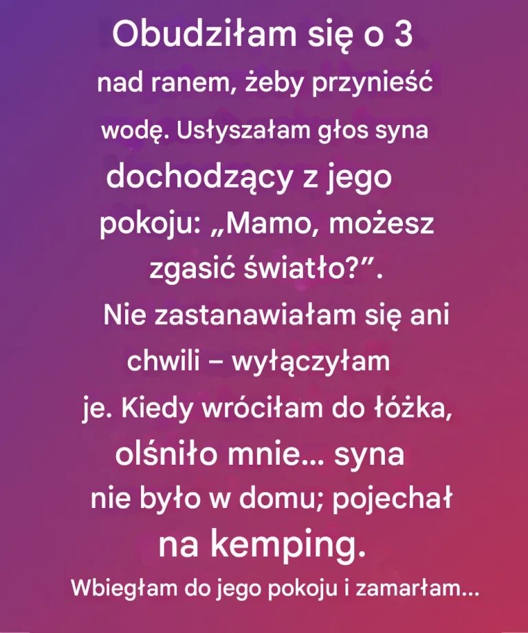 Ik werd om 3 uur ‘s nachts wakker, dorstig en suf. Het huis was stil, gehuld in de stilte van de ochtend.