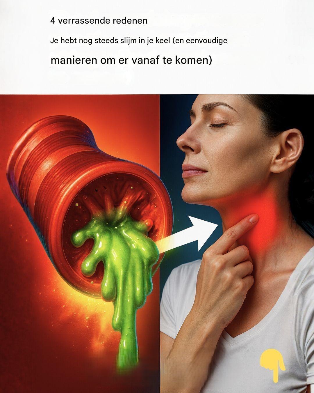 Een beetje slijm in je keel is volkomen normaal tijdens een verkoudheid of seizoensgebonden allergieën. Maar wanneer het slijm dik, overvloedig en weken of zelfs maandenlang aanhoudt, wordt het een probleem. Het is niet alleen ongemakkelijk; het is een waarschuwingssignaal van je lichaam, dat wijst op een disbalans. Vandaag bekijken we de vier meest voorkomende, maar vaak over het hoofd geziene, oorzaken van aanhoudend slijm in je keel. Ik leg uit hoe je de waarschuwingssignalen voor elk ervan kunt herkennen en, belangrijker nog, ik deel vijf natuurlijke en effectieve strategieën waarmee je het probleem eindelijk kunt oplossen en weer vrij kunt ademen. (Dit artikel is gebaseerd op de expertise van Dr. Veller, een geregistreerd verpleegkundige.)