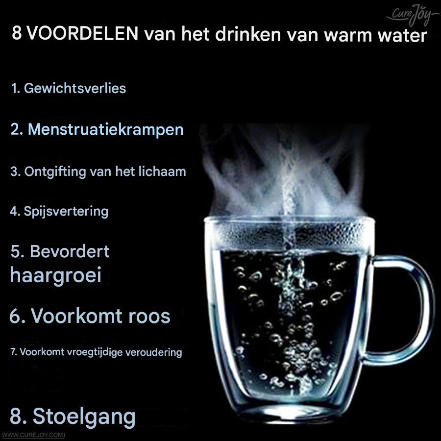 Warm water stimuleert de stofwisseling, waardoor het lichaam efficiënter calorieën kan verbranden. Een warme drank voor de maaltijd kan ook een gevoel van verzadiging geven, waardoor je minder snel naar snacks grijpt. Hoewel warm water op zichzelf geen drastisch gewichtsverlies veroorzaakt, kan het een waardevolle ondersteuning zijn in combinatie met gezonde voeding en voldoende beweging.