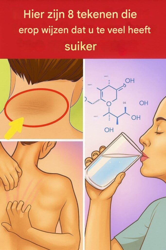 Een zichtbaar teken van een teveel aan suiker is het verschijnen van donkere, fluweelachtige vlekken op plekken zoals de nek, oksels of rug. Dit fenomeen wordt vaak in verband gebracht met insulineresistentie.