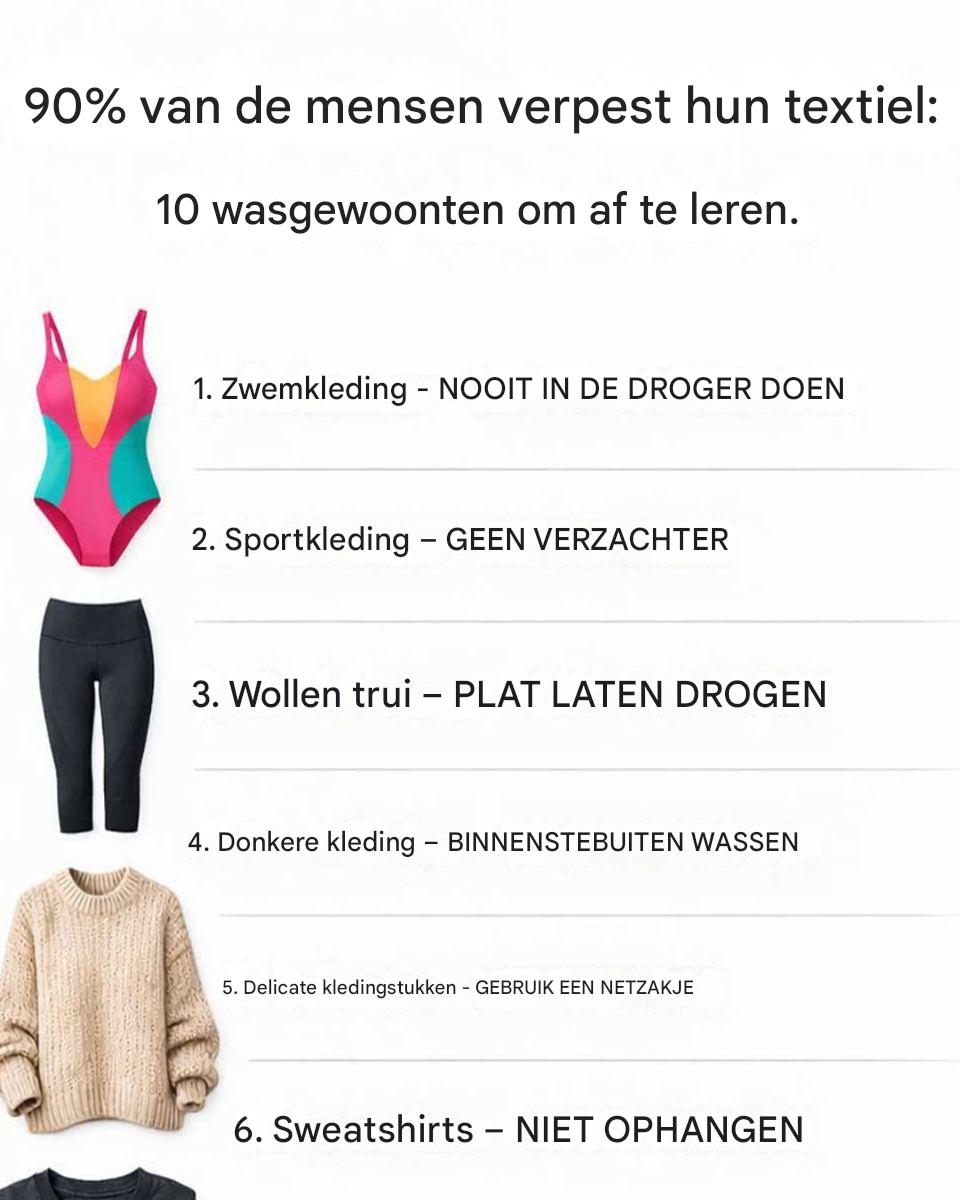 Wasvoorschriften zijn er niet voor niets, maar worden vaak genegeerd. Delicate kledingstukken zoals lingerie en badkleding vereisen specifieke wasvoorschriften om hun elasticiteit en vorm te behouden. Het negeren van deze instructies kan leiden tot uitgerekte of beschadigde kledingstukken.