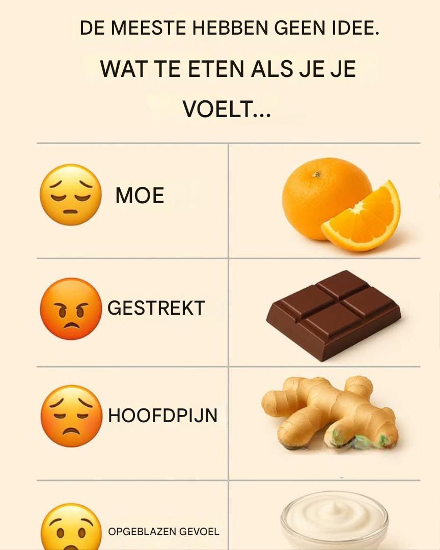 Waarom het werkt: Pure chocolade (vooral met 70% cacao of meer) bevat flavonoïden die de bloedtoevoer naar de hersenen verbeteren en cortisol (je stresshormoon) verlagen. Het stimuleert ook de afgifte van endorfine en serotonine – natuurlijke stemmingsverbeteraars.