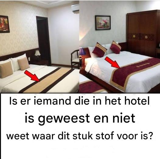 De meeste hotelbedden ter wereld hebben, naast een volledige set dekens, lakens en kussens, een donker stuk stof (een zogenaamde loper) van ongeveer een halve meter breed over het bed gelegd.