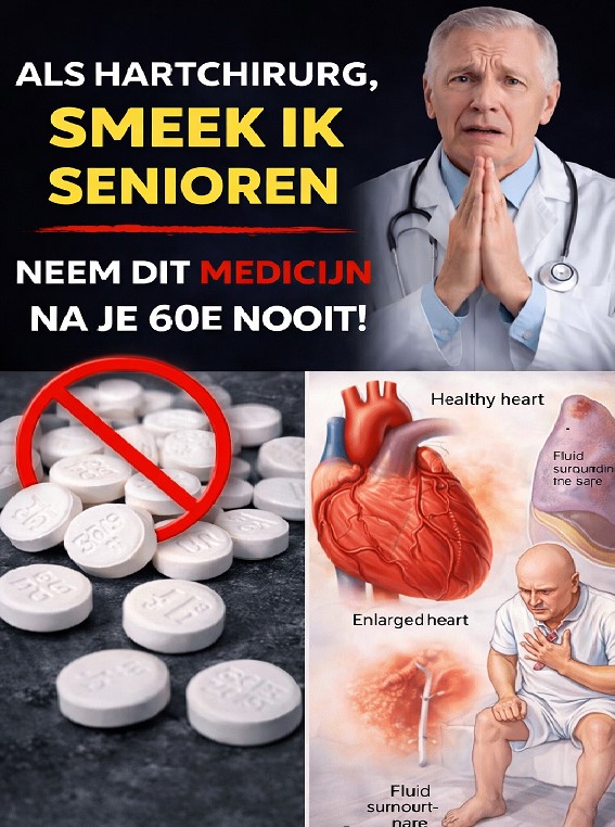 De online rondcirculerende afbeelding toont een bezorgde arts die ouderen boven de 60 smeekt om een bepaald veelvoorkomend medicijn te vermijden. De arts waarschuwt dat het medicijn het hart kan verzwakken, vochtophoping rond de longen kan veroorzaken, een vergroot hart kan teweegbrengen en gezwollen voeten kan veroorzaken. Deze symptomen wijzen op hartfalen of vochtretentie, aandoeningen die veel ouderen ervaren. Maar is er één specifieke pil die deze dramatische bewering veroorzaakt? Laten we eens bekijken wat betrouwbare bronnen zeggen over medicijnen die daadwerkelijk risico’s voor de hartgezondheid van 60-plussers met zich meebrengen.