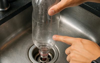 Een fles ondersteboven in de gootsteenafvoer zetten: een slimme truc