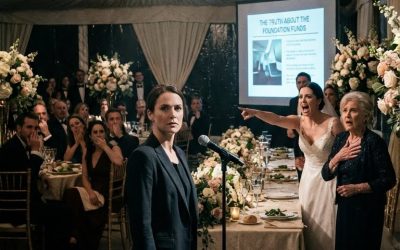 Op de bruiloft van mijn zus, die $1,2 miljoen kostte, kreeg ik alleen een koud stuk pizza. Mijn moeder sneerde: « Betaal de tafelhuur. » Mijn zus grijnsde: « Eet maar lekker op de restjes. » Tijdens de speeches pakte ik de microfoon. « Ik heb een speciale presentatie. » Het scherm lichtte op. Hun gezichten werden bleek. « Zet het uit! » schreeuwde mijn zus. Tweehonderd gasten verstijfden van schrik. Wraak in de kou.