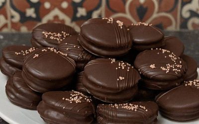 Deze opgerolde chocolade-praline kerstboomstam bestaat uit een zachte cacaobiscuit, een romige pralinecrème en een glanzend chocoladeglazuur. Een betrouwbaar en elegant…