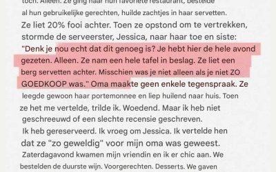 Toen een serveerster de tip van mijn oma bespotte, verwachtte ze de les die ik had gepland niet
