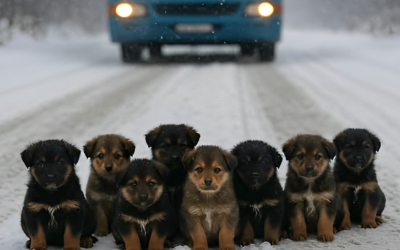 De chauffeur had amper tijd om te stoppen: de puppy’s lagen overal op de weg.