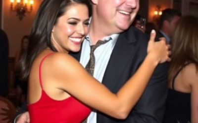 lachte de man, terwijl hij de taille van de jonge blondine in haar strakke rode jurk omhelsde In een tijdperk…