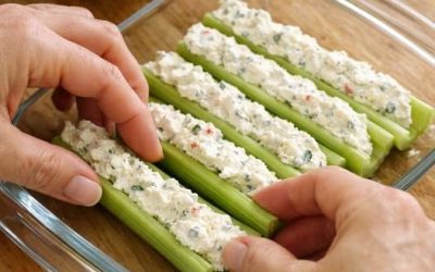 Vul selderijstengels met deze romige vulling voor een feestelijke traktatie waar je steeds weer naar zult grijpen.