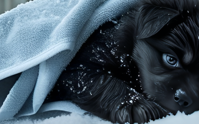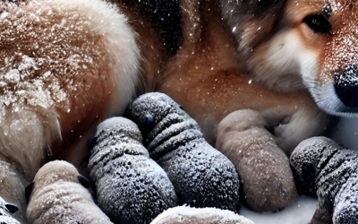 De hond bleef haar puppy’s tot het allerlaatste moment warm houden, ondanks de ijzige kou.