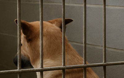 Toen ik hem voor het eerst zag, zat hij met zijn neus in de hoek gedrukt. Hij blafte niet, vroeg…