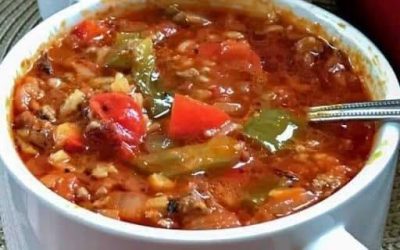 Deze makkelijke gevulde paprikasoep combineert alle heerlijke smaken van klassieke gevulde paprika's – hartig rundvlees, zachte rijst en een rijke…