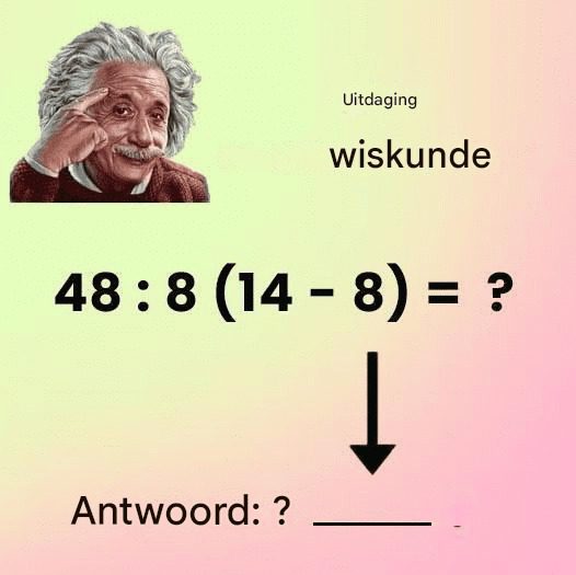 Een simpele berekening, twee mogelijke antwoorden, maar slechts één is correct. Kun je de regels precies toepassen om de juiste oplossing te vinden? Bereid je voor om je hersenen te testen en ontdek waarom één van de oplossingen de sleutel is tot deze puzzel die al zo veel mensen heeft beziggehouden. Ben je klaar voor de uitdaging?
