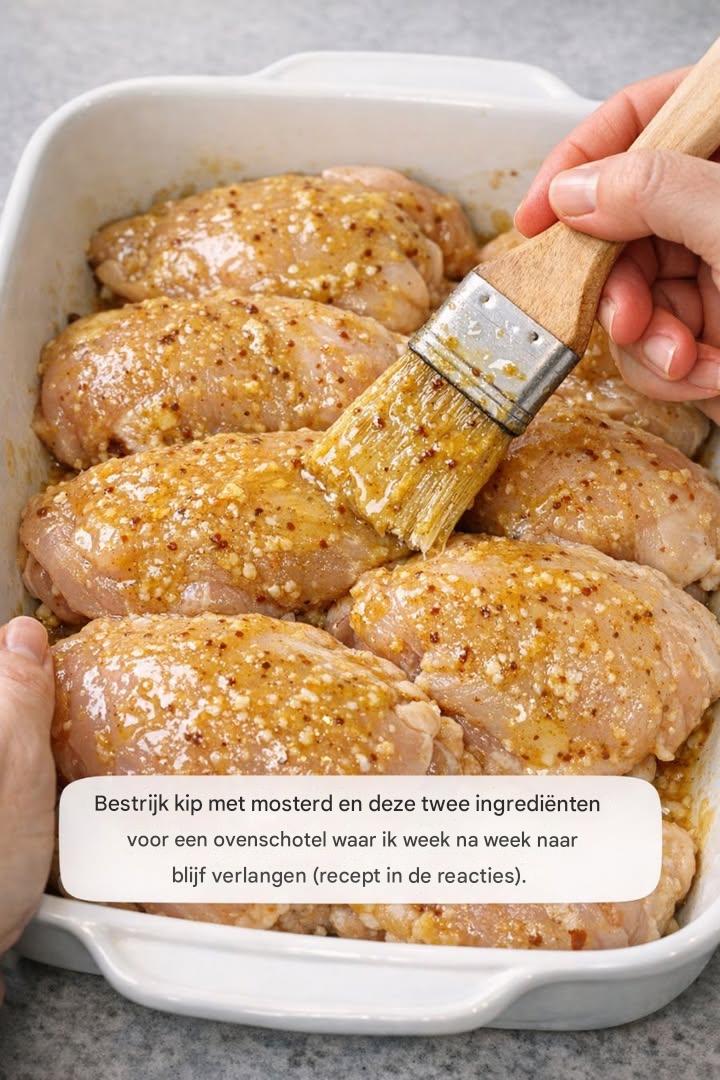 Deze kip met honing-mosterdsaus, gemaakt met slechts drie ingrediënten, is zo'n wondermiddel voor doordeweekse avonden dat veel chiquer aanvoelt dan het in werkelijkheid is. Ik begon het te maken op avonden dat ik thuiskwam van mijn werk, in de koelkast staarde en besefte dat ik absoluut geen energie had voor ingewikkelde recepten – maar toch iets spannenders wilde dan gewone gebakken kip. De schoonheid van dit gerecht zit hem in de eenvoud: mosterd uit een potje, honing en kippenbouten of -filets. Meer niet. Geen snijwerk, geen urenlang marineren, geen afwas. Kip met honing-mosterdsaus is een klassiek Amerikaans comfortgerecht – zoet, pittig, een beetje plakkerig en helemaal geschikt voor het hele gezin. Het is het soort recept dat je achter de hand houdt voor drukke avonden, onverwachte gasten of wanneer je gewoon wilt dat het eten zichzelf klaarmaakt terwijl je e-mails beantwoordt of helpt met huiswerk.