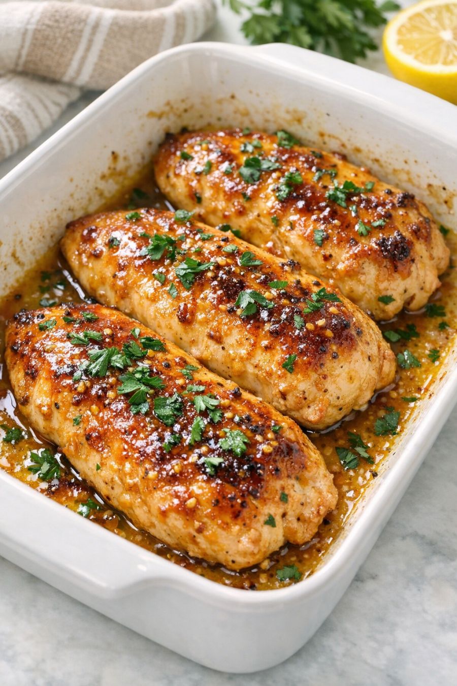 Eenvoudige ovenschotel met honing-mosterdkip met slechts 3 ingrediënten