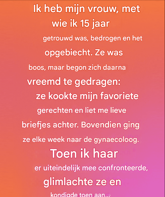 “Het huwelijk is gebouwd op vertrouwen – of tenminste, dat dacht ik. We hadden een leven opgebouwd samen gevuld met lachen, dromen en onuitgesproken beloften. Maar op een avond veranderde een bekentenis alles… en ik wist niet of onze liefde het kon overleven.”