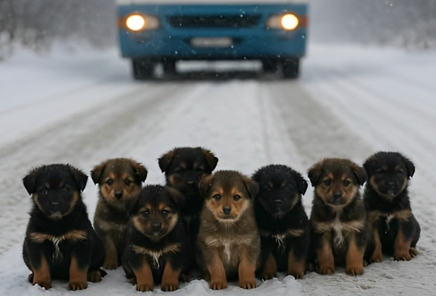 “Maar deze kleintjes houden het geen uur vol in deze kou.” — gromde hij, zette de alarmlichten aan en pakte een oude deken uit de kofferbak. Maar toen, in het licht van de koplampen, flitste er iets tussen de struiken langs de kant van de weg. Anton scheen er met zijn telefoon zijn licht op.