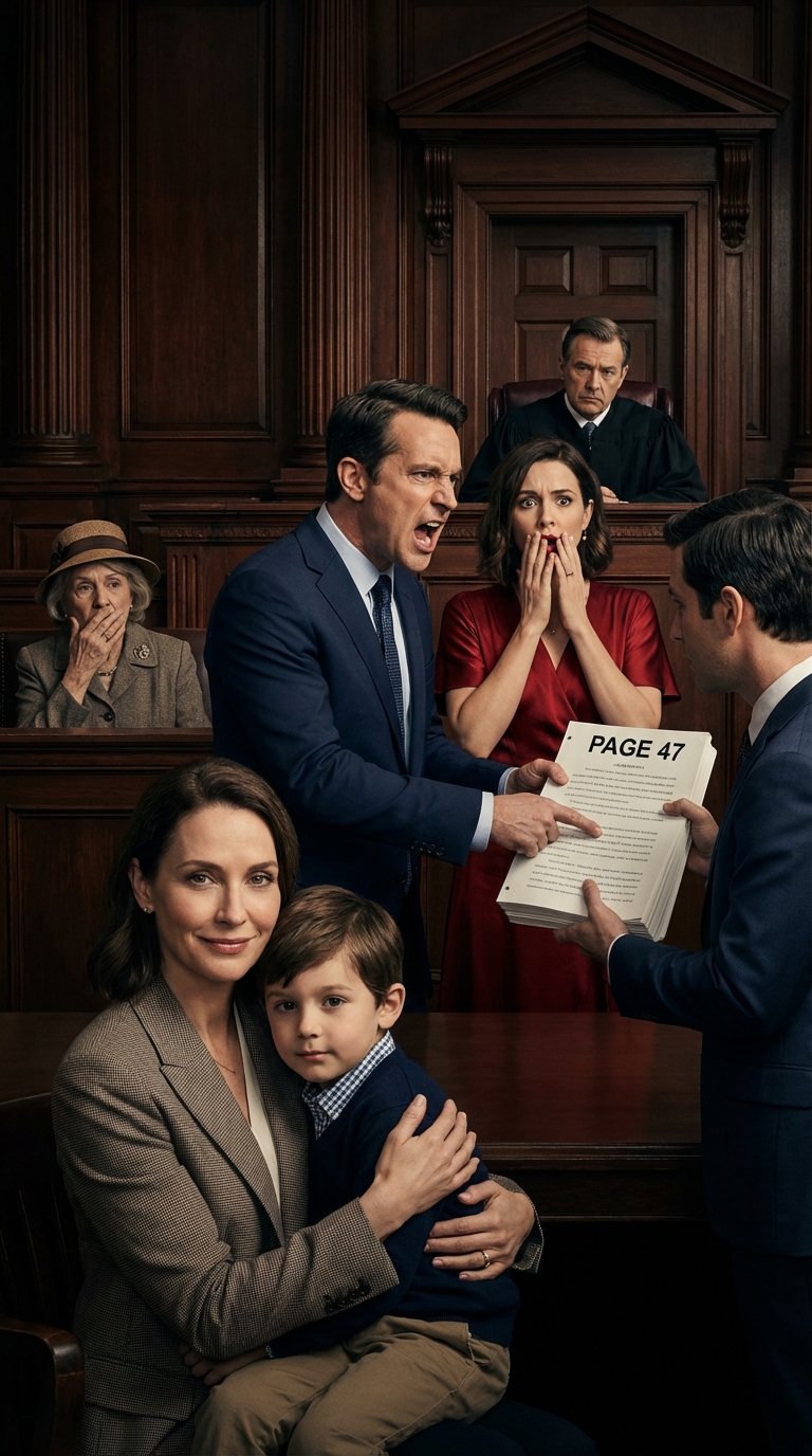 De dag dat mijn man alles meenam in de scheiding en ik hem bedankte in het bijzijn van zijn nieuwe vriendin en zijn moeder: Mijn man eiste een scheiding om met zijn maîtresse te kunnen trouwen. « Ik houd het huis en het bedrijf, » grijnsde hij. « Jij mag het kind houden. » Ik stemde ermee in om alles over te dragen. Hij dacht dat hij gewonnen had. Maar hij had pagina 47 niet gelezen. Op het moment dat de rechter de papieren ondertekende, verdween zijn glimlach.