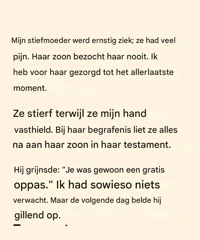 Maar de volgende dag belde haar zoon – boos, verward, bijna schreeuwend.