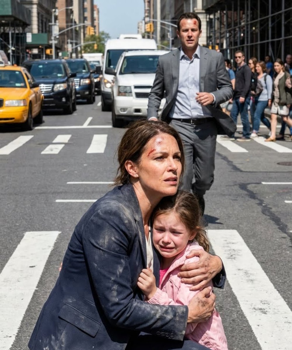 En precies daar, op het zebrapad, kwam een klein meisje in een roze jasje naar voren drijven, haar ogen gericht op duiven die langs de stoeprand huppelden. Haar oppas stond een paar stappen achter haar, scrollend op haar telefoon, zich er niet van bewust dat de wereld op het punt stond in te storten.