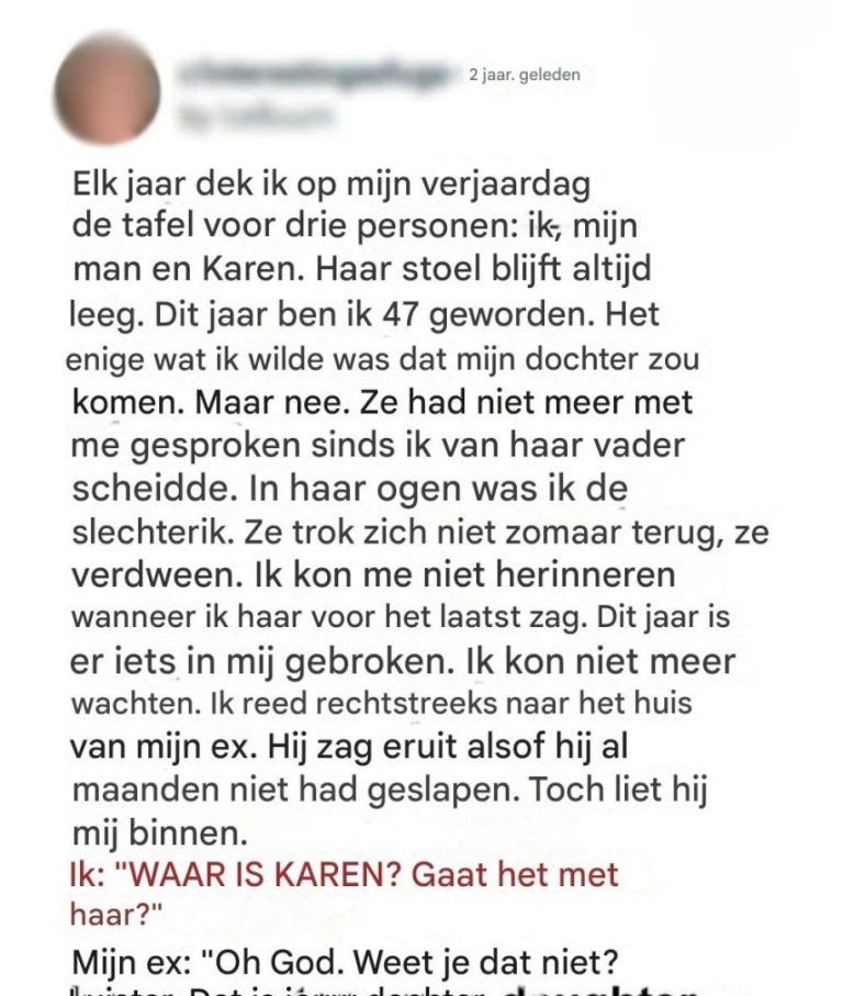 Mijn 47e verjaardag verliep in stilte, met slechts drie borden op tafel, één stoel onaangeroerd, een stille echo van de dochter met wie ik al twee jaar niet had gesproken.
