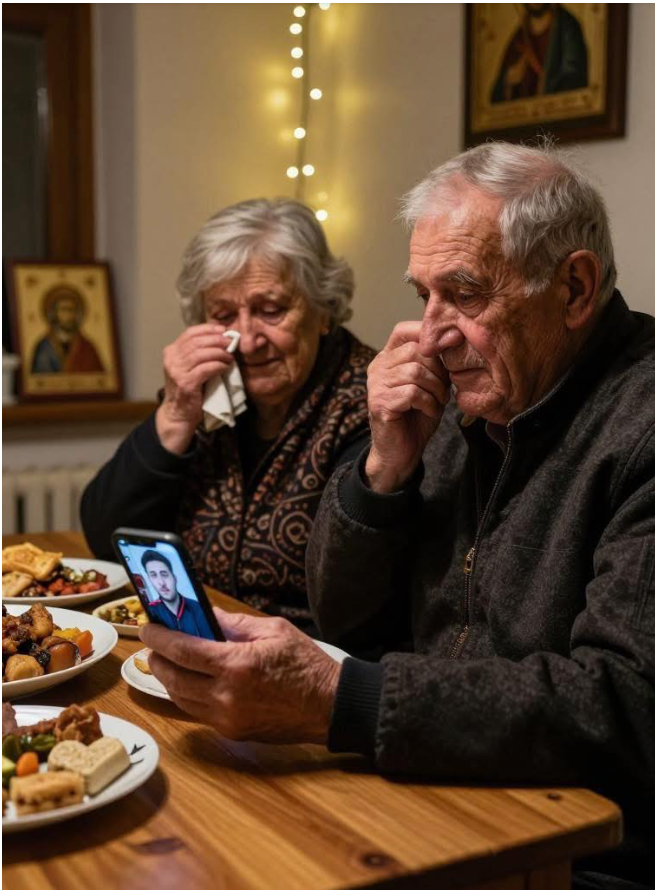 Voor de vijfde kerst op rij dekte ik de tafel voor drie, en zat ik opnieuw alleen met mijn man aan tafel. Darko keek ons vanaf het scherm aan, moe en bleek, en beloofde « volgend jaar » te komen. Toen de verbinding wegviel, bleef ik achter met een zwart scherm en een koud gebraden stuk vlees. Mijn man deed zwijgend de lichten in de kamer uit en schonk wat cognac in. Hij zei dat het geen zin had om te eten als we niemand te eten hadden. Het huis werd doodstil en ik wist zeker dat dit de droevigste nacht van ons leven zou worden.