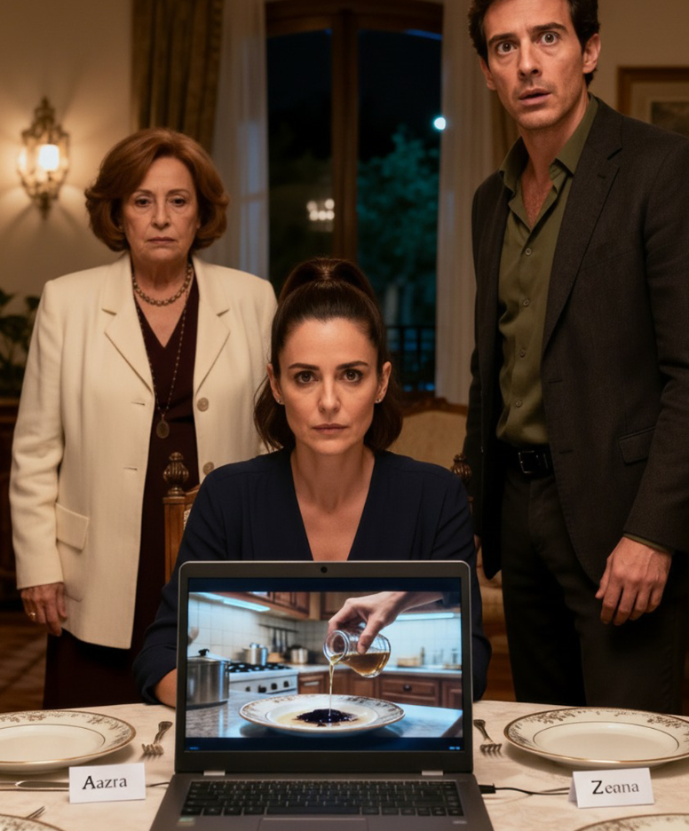 « Deze is speciaal voor jou. Je bent altijd erg gevoelig geweest, » spinde mijn schoonmoeder terwijl ze de gelabelde borden uitdeelde. Iets aan haar glimlach deed me tot op het bot rillen. Zonder een woord gooide ik mijn bord in de prullenbak. Mijn man barstte uit: « Wat ben je in hemelsnaam aan het doen? » Ik glimlachte, opende mijn laptop en zei kalm: « Kijk wat speciaal voor mij is klaargemaakt. » Toen de video begon af te spelen, viel de stilte als een de:a:th zin. En zijn gezicht was het eerste dat veranderde.