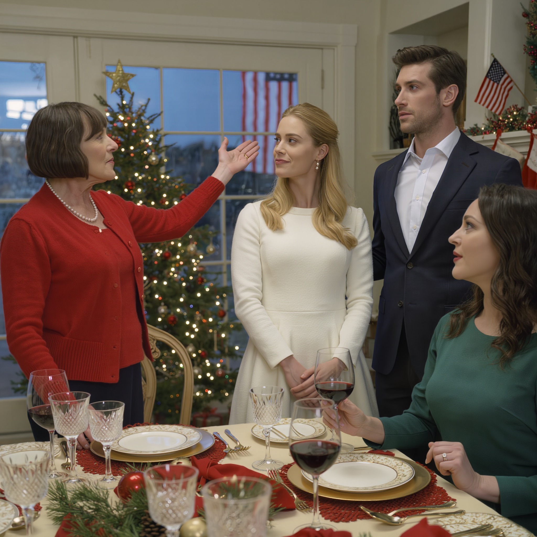 « Dit is Emma, » kondigde mijn schoonmoeder trots aan tijdens het kerstdiner, wijzend naar een elegant geklede blondine die naast haar zat. « Zij zal perfect zijn voor James na de scheiding, » voegde ze er met een ondeugende glimlach aan toe, luid genoeg zodat alle gasten het konden horen.