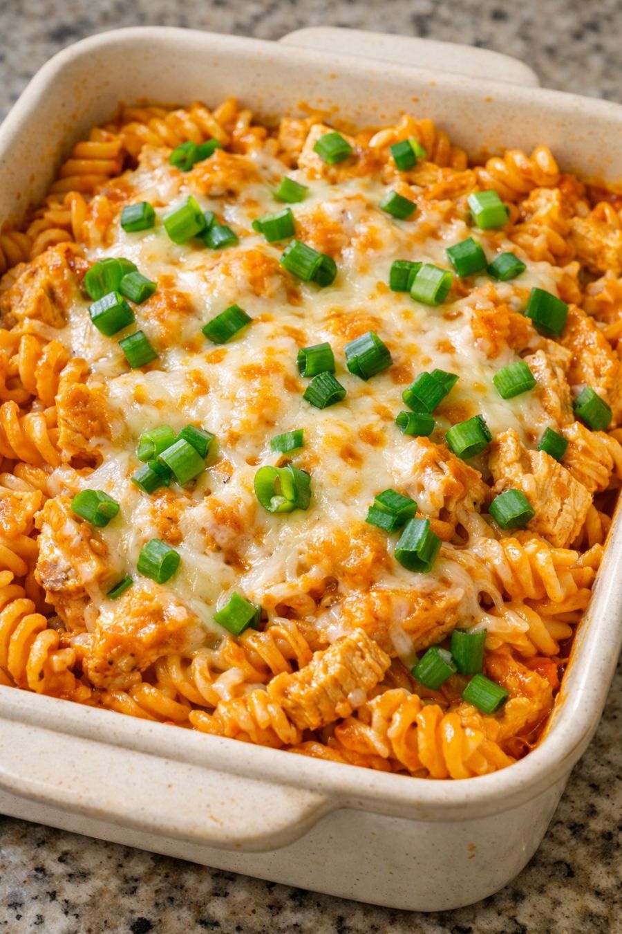 Ovengebakken pasta met buffelkippensmaak en 5 ingrediënten