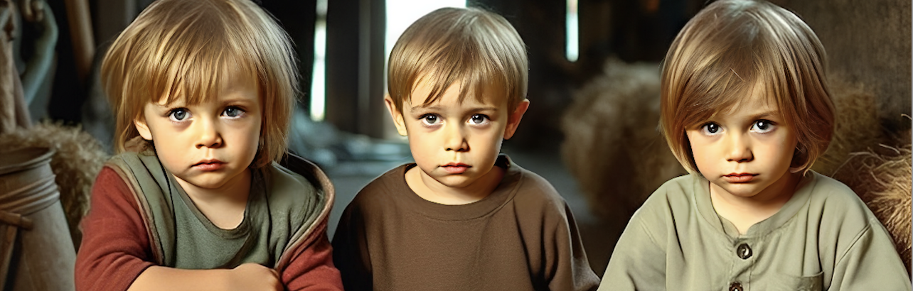 Achter de keukendeur, op de vloer van vergeeld en al lang niet meer schoongemaakt linoleum, zaten drie kinderen dicht tegen elkaar aan gedrukt — als kuikens in een nest. Hun ogen, vol hoop en honger, waren gericht op de kier van de deur. In stilte keken ze toe hoe in de pannen een magere portie huzarensalade pruttelde en hoe hun moeder, Lesja, met automatische bewegingen de salade overschepte, alsof ze er meer uit wilde halen dan erin zat.