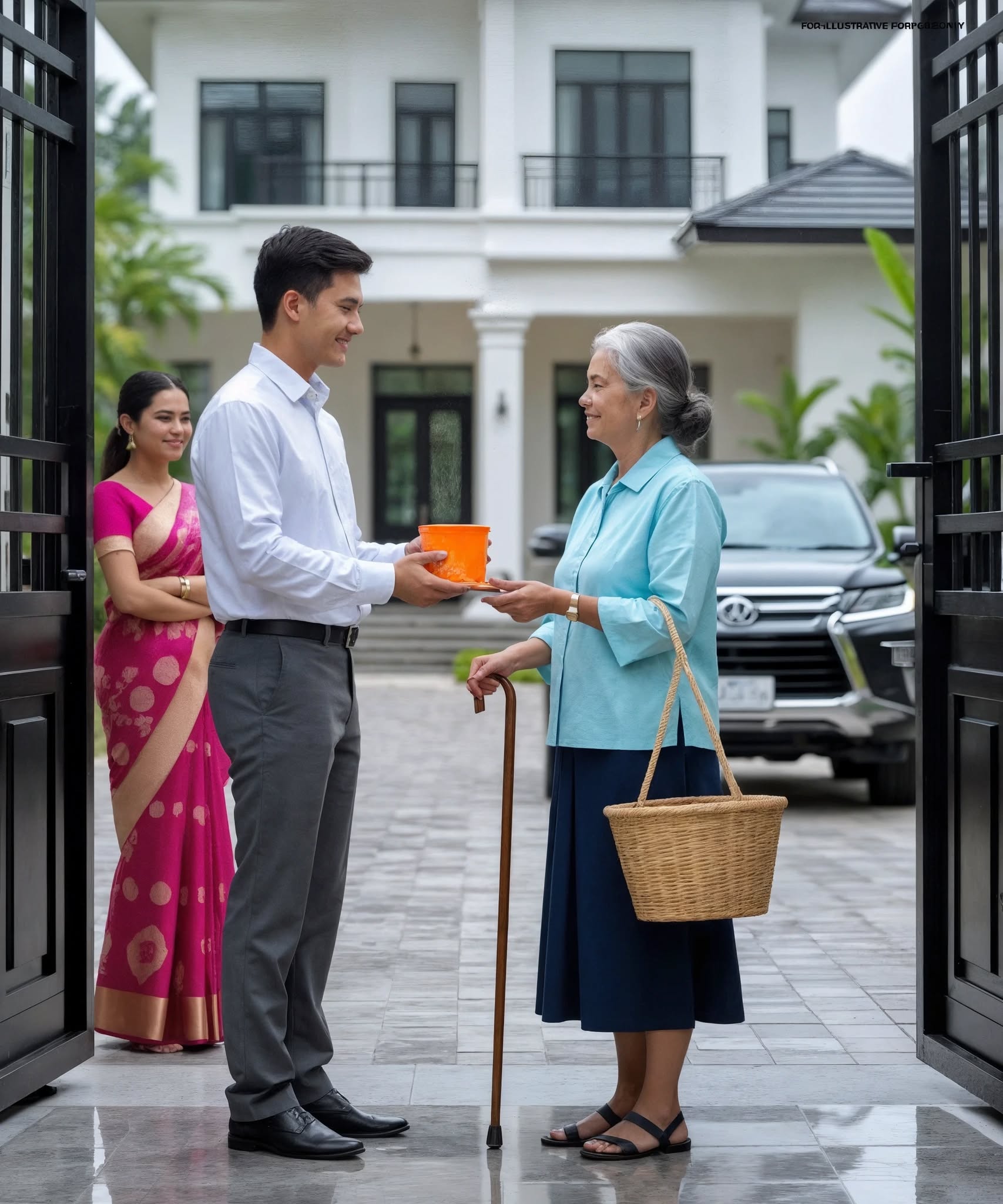 Maar in plaats van haar te helpen, gaf hij haar een eenvoudig pakje instantnoedels voordat hij haar beleefd naar de deur begeleidde.