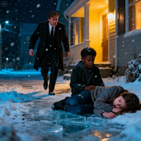« LILY! » riep hij, terwijl hij uitgleed op het ijs tijdens het rennen.