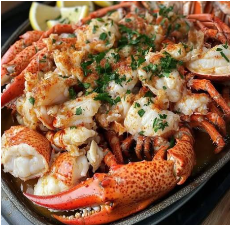 Leg het kreeftenvlees en de krabklauwen in een grote koekenpan of ovenschaal.