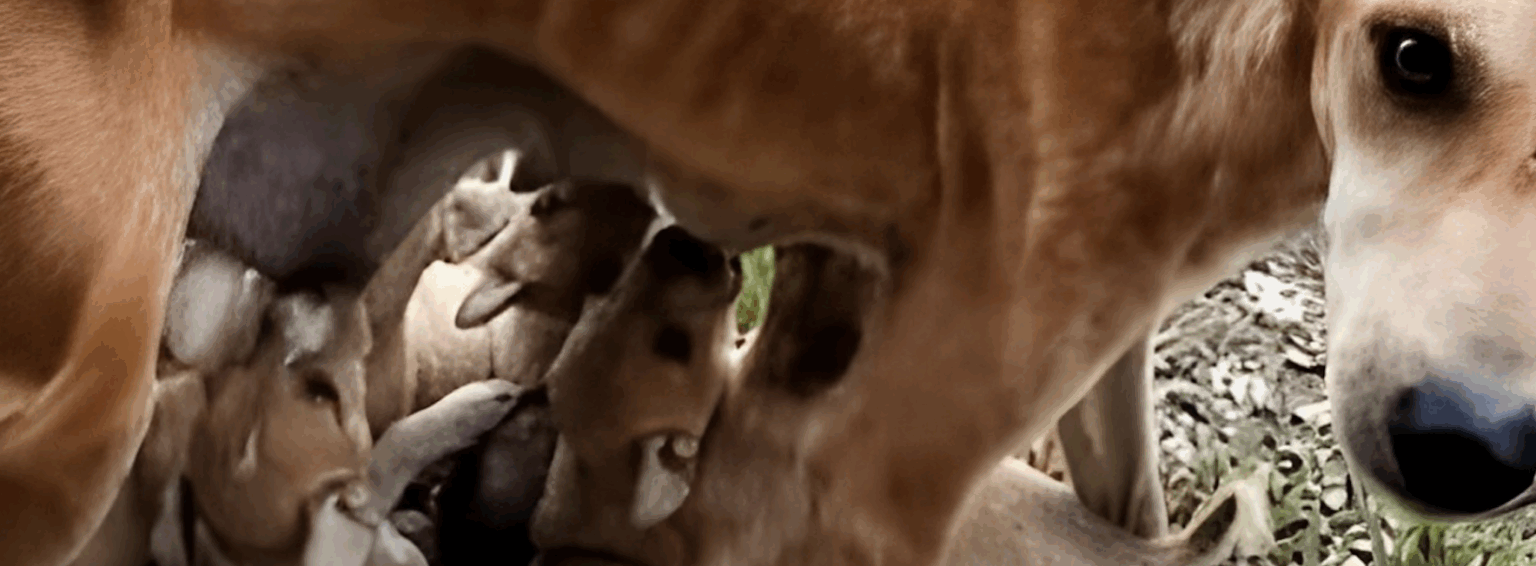Een hulpeloze, uitgeputte moederhond smeekte om hulp om haar pups te kunnen voeden.