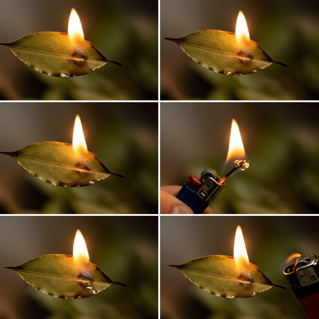 Let op: laat een brandend blad nooit onbeheerd achter en vermijd het direct inademen van de rook.