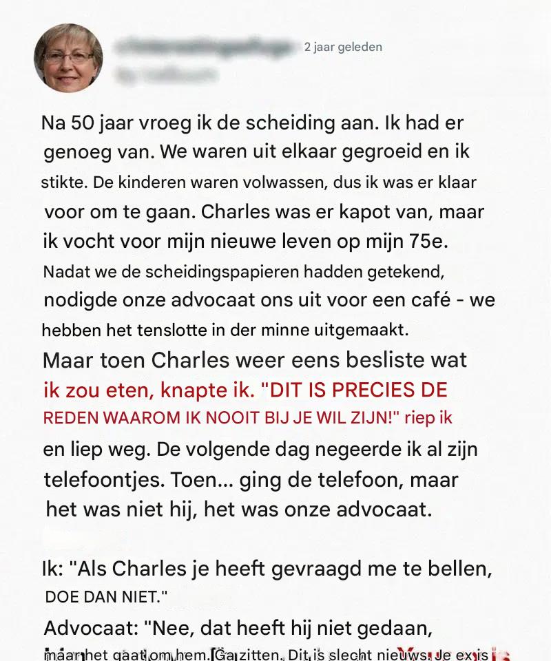 Na 50 jaar huwelijk vertelde de 75-jarige Rose haar man Charles dat ze wilde scheiden.