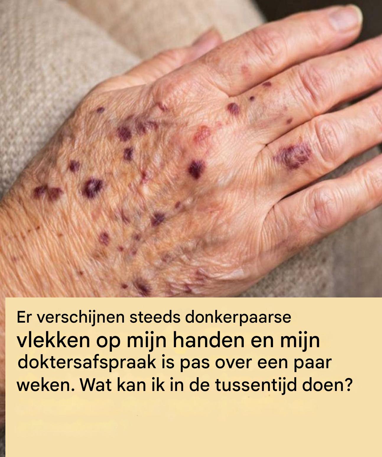 Op een ochtend zie je een donkere vlek op je hand. Een paar dagen later verschijnt er nog een. Ze lijken op blauwe plekken, maar je herinnert je geen stoot. Je angst neemt toe, vooral omdat je afspraak bij de dokter nog even op zich laat wachten. Moet je je zorgen maken? Je gewoontes aanpassen? Goed nieuws: in veel gevallen zijn deze verontrustende vlekken onschuldiger dan ze lijken, en er zijn eenvoudige stappen die je kunt nemen om deze periode rustiger door te komen, zelfs met paarse vlekken op je handen.