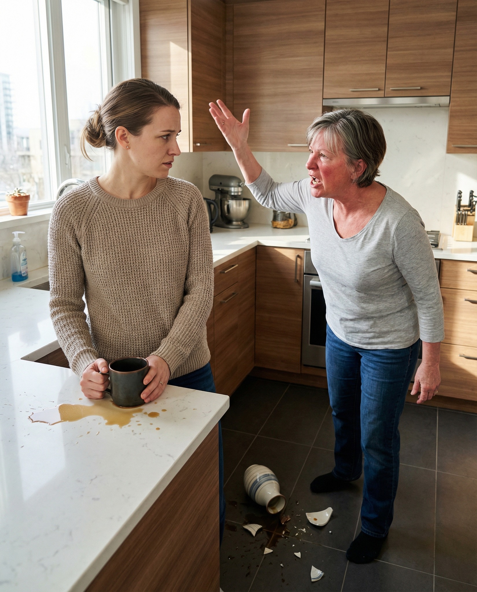 ‘Aan jou?’ Ze barstte in hard gelach uit. ‘Als het niet voor mijn zoon was geweest, zou je nog steeds in een vochtige huurkamer wonen! Thomas heeft alles zelf verdiend. Jij niet. Jij hebt nooit iets bijgedragen!’