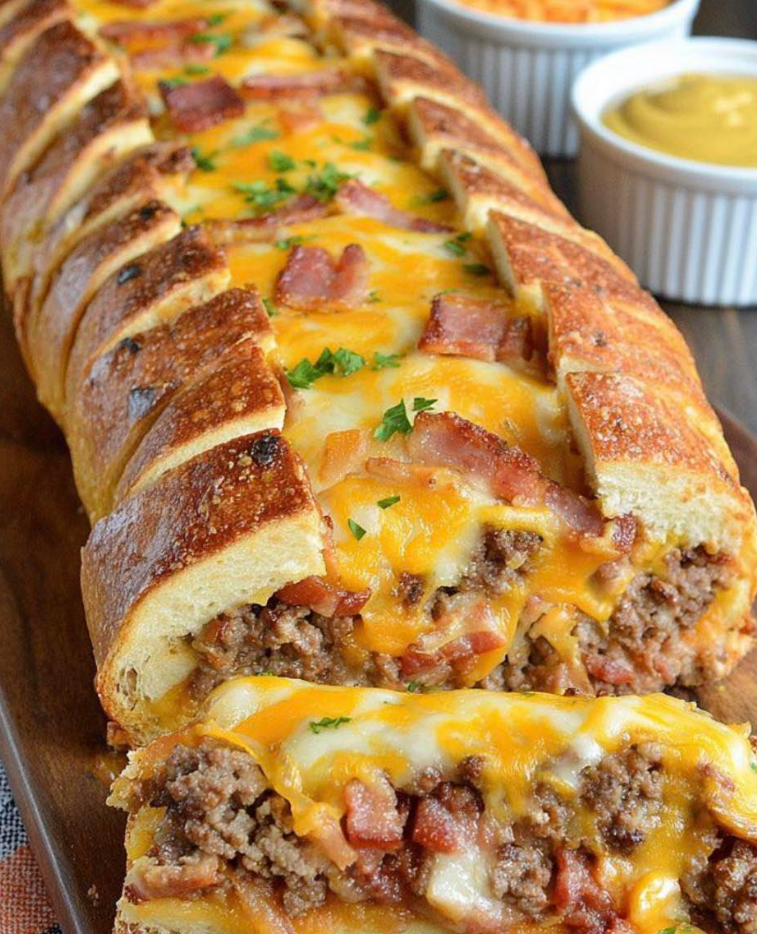 Af en toe duikt er een recept op dat de definitie van comfort food op de proef stelt – op de best mogelijke manier. Maak kennis met Garbage Bread , een legende in de wereld van decadente, rijkgevulde, perfect voor sportwedstrijden en publieksvriendelijke creaties. Ondanks de naam is er niets ‘garbage’ aan. Sterker nog, het is een briljante mix van alles wat lekker is: gekruid rundvlees, knapperig spek, gesmolten kaas en tal van hartige extra’s, allemaal verpakt in een warm, goudbruin brood.