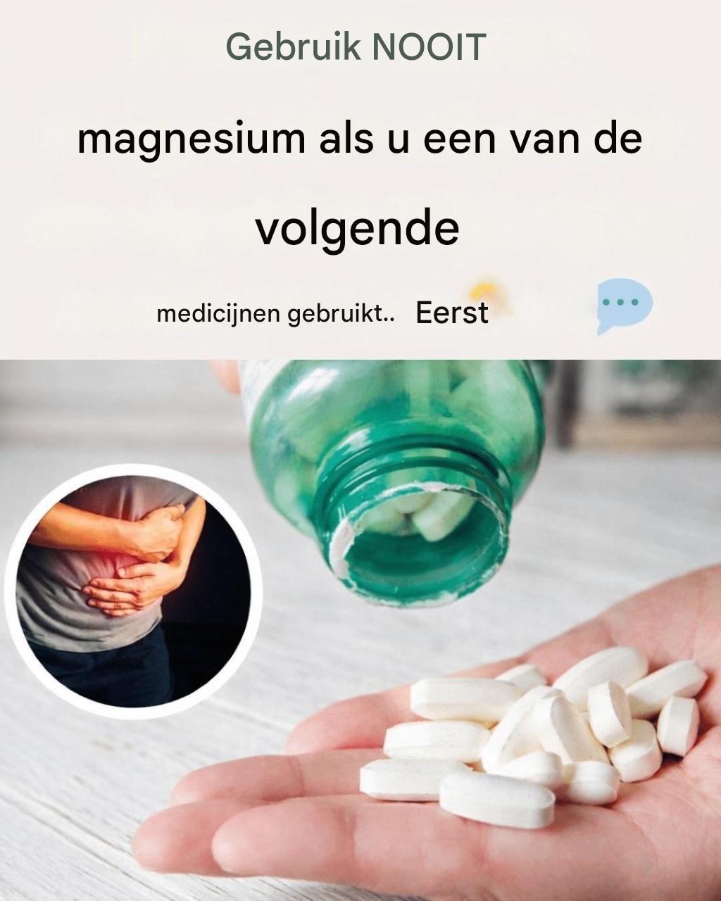 Magnesium kan zich echter soms binden aan bepaalde medicijnen in het spijsverteringskanaal , waardoor de opname van het medicijn door het lichaam wordt verminderd. In andere gevallen kan magnesium de werking van medicijnen versterken of juist belemmeren , met name als het gaat om de bloeddruk of de mineralenbalans.