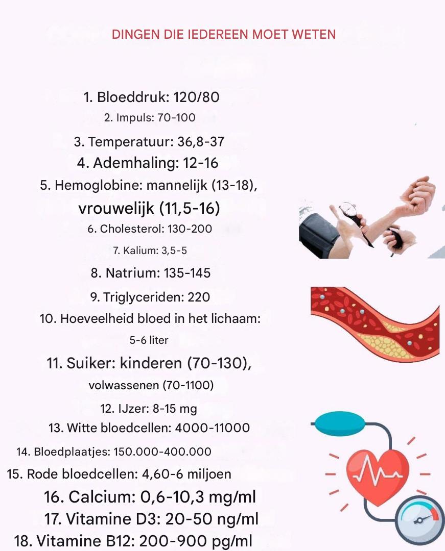 Het handhaven van gezonde lichaamsparameters is essentieel om ziekten te voorkomen en je welzijn te bevorderen. Hoewel het altijd het beste is om een arts te raadplegen voor een accurate diagnose, kan het zeer nuttig zijn om deze parameters te begrijpen en te weten hoe je ze kunt beïnvloeden door middel van gezonde voeding en gewoonten. Hieronder geef ik recepten en natuurlijke tips om enkele van deze belangrijke parameters in balans te brengen.