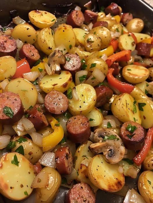 Door uien toe te voegen, wordt het gerecht naar een hoger niveau getild. Tijdens het karameliseren geven ze een natuurlijke zoetheid af die perfect samengaat met de hartige aardappelen, waardoor een diepe, troostende en gelaagde smaak ontstaat.
