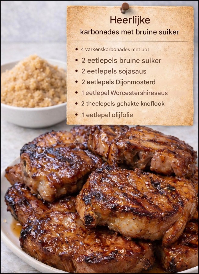 Deze varkenskarbonades met bruine suiker zijn zoet, hartig en perfect gekarameliseerd. Tijdens het bakken verandert de saus in een rijke, glanzende glazuurlaag die zich om het vlees heen vormt. Hierdoor krijgt elke hap een heerlijke balans van zoete bruine suiker, pittige Dijonmosterd en de hartige smaak van sojasaus.