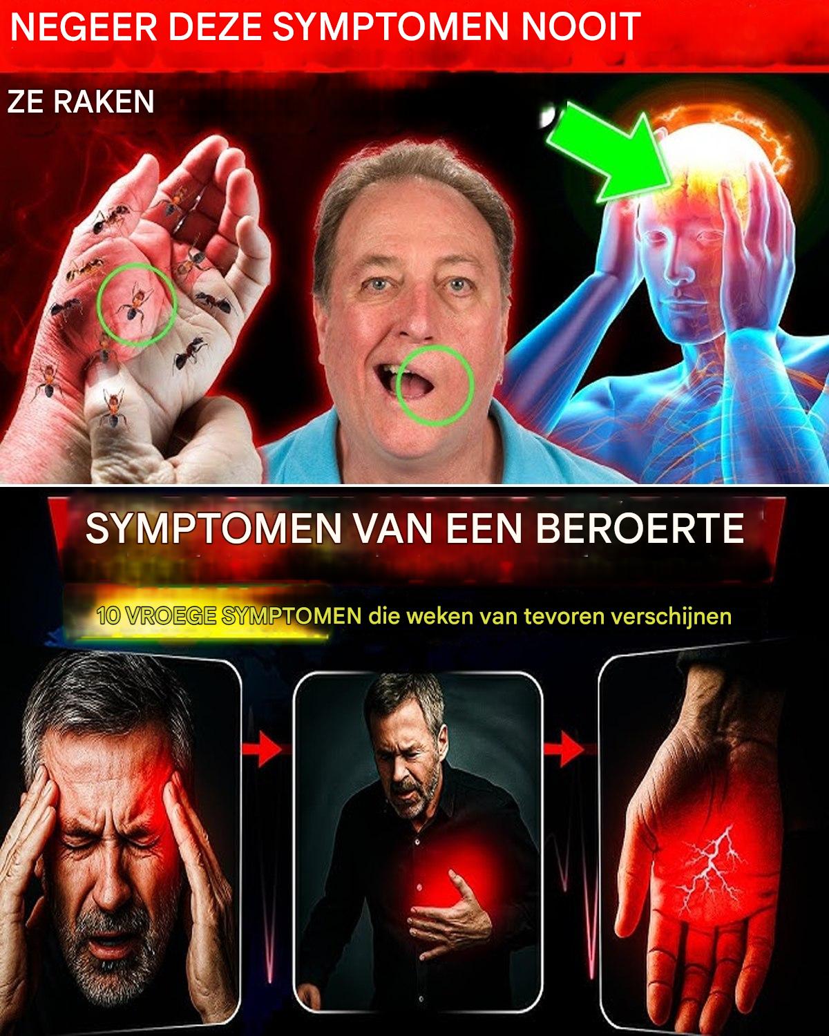 Een beroerte treedt op wanneer de bloedtoevoer naar de hersenen wordt geblokkeerd of verminderd, wat leidt tot een zuurstoftekort in het hersenweefsel. Vroege herkenning van de symptomen is cruciaal – de behandeling is het meest effectief als deze snel wordt gestart. Sommige symptomen kunnen zelfs dagen of weken vóór een ernstige beroerte optreden.