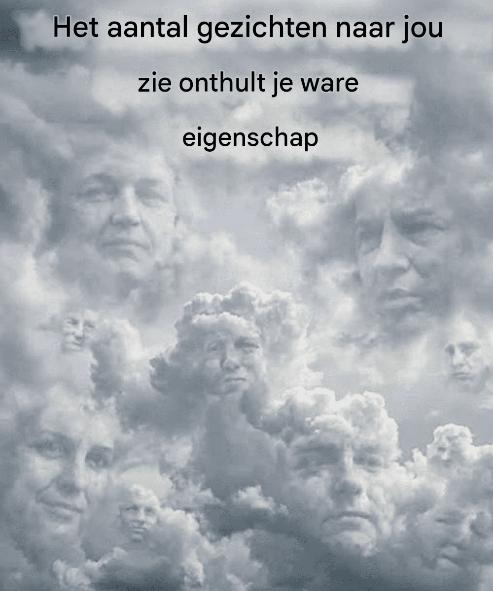 Op het eerste gezicht lijkt de afbeelding eenvoudig en bijna rustgevend. Een kalme hemel. Zachte wolken die onhaastig voortdrijven. Niets dramatisch. Maar als je even stilstaat en goed kijkt, gebeurt er iets interessants. Vormen beginnen langzaam gestalte te krijgen. Licht en schaduw verschuiven. En al snel zie je misschien gezichten discreet tussen de wolken verschijnen.